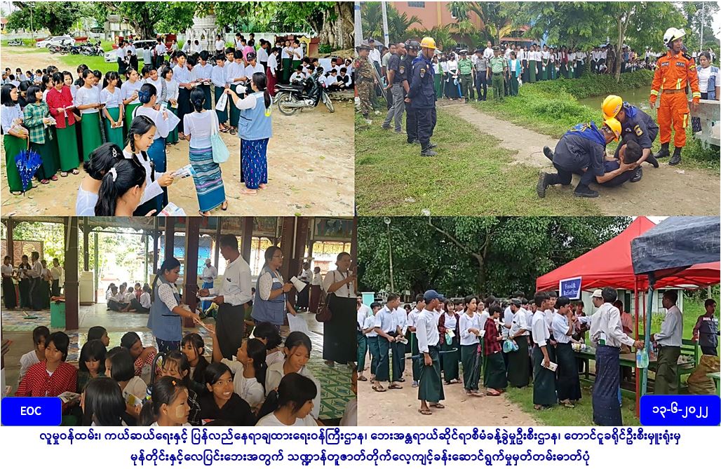 လူမှုဝန်ထမ်း၊ ကယ်ဆယ်ရေးနှင့်ပြန်လည်နေရာချထားရေးဝန်ကြီးဌာန၊ ဘေးအန္တရာယ်ဆိုင်ရာစီမံခန့်ခွဲမှုဦးစီးဌာန၊ ပဲခူးတိုင်း ဒေသကြီး၊ တောင်ငူခရိုင်ဦးစီးမှူးရုံးမှ တာဝန်ရှိသူများသည် တောင်ငူခရိုင်၊ ရေတာရှည်မြို့နယ်တွင် (၁၃-၆-၂၀၂၂) ရက်နေ့၌ မုန်တိုင်းနှင့် လေပြင်းဘေးသဏ္ဍာန်တူဇာတ်တိုက်လေ့ကျင့်ခန်းကို မြို့နယ်သဘာဝဘေးကော်မတီများနှင့် ကျောင်းသား၊ ကျောင်းသူ (၃၀၀) ဦးခန့်ဖြင့် ဆောင်ရွက်ခဲ့ရာ မနက်ပိုင်းတွင် မြို့နယ်သဘာဝဘေးကော်မတီများက ရေတာရှည်မြို့နယ်အတွင်း မုန်တိုင်းနှင့် လေပြင်းဘေးအန္တရာယ်ကျရောက်လာပါက ကော်မတီဝင်များအနေဖြင့် ဆောင်ရွက်ရမည့်လုပ်ငန်းစဉ်များ၊ ဘေး အန္တရာယ်ကျရောက်နိုင်သည့် နေရာများ၊ ဘေးလွတ်ရာနေရာများ၊ ယာယီခိုလှုံရာနေရာများကို ဖော်ထုတ်ဆွေးနွေးကြပါ သည်။ နေ့ခင်းပိုင်းတွင် သဏ္ဍာန်တူဇာတ်တိုက်လေ့ကျင့်မှုကို ဆက်လက်လုပ်ဆောင်ရာတွင် ဒေသခံများအား ဘေးလွတ်ရာသို့ ပြောင်းရွှေ့ ခြင်း၊ ရေပြင်နှင့် မြေပြင်ကယ်ဆယ်ရေးလုပ်ငန်းများကို ဆောင်ရွက်ကြကြောင်း၊ ဇာတ်တိုက်ဆောင်ရွက်မှုသို့ ခရိုင်စီမံအုပ်ချုပ်ရေး အဖွဲ့ဝင်များ၊ ရေတာရှည်မြို့နယ်သဘာဝဘေးကော်မတီဝင်များနှင့် အထက (ရေတာရှည်)မှ ကျောင်းသား၊ ကျောင်းသူများ စုစုပေါင်း လူဦးရေ (၄၀၀) ကျော်တက်ရောက်ခဲ့ကြပါသည်။