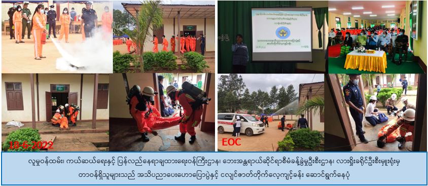 လူမှုဝန်ထမ်း၊ ကယ်ဆယ်ရေးနှင့် ပြန်လည်နေရာချထားရေးဝန်ကြီးဌာန၊ ဘေးအန္တရာယ်ဆိုင်ရာ စီမံခန့်ခွဲမှုဦးစီးဌာန၊ လားရှိုးခရိုင်ဦးစီးမှူးရုံးမှ တာဝန်ရှိသူများသည် (၁၈-၆-၂၀၂၂) ရက်နေ့တွင် ပြန်လည် ထူထောင်ရေးဦးစီးဌာန၊ မီးသတ်ဦးစီးဌာနနှင့် မြန်မာနိုင်ငံကြက်ခြေနီ အသင်းတို့ပူးပေါင်း၍ နယ်စပ်ရေးရာဝန်ကြီးဌာန၊ ပညာရေးနှင့်လေ့ကျင့်ရေးဦးစီးဌာန၊ နယ်စပ်ဒေသတိုင်းရင်းသားလူငယ်များ ဖွံ့ဖြိုးရေးသင်တန်းကျောင်းမှ ကျောင်းသား၊ ကျောင်းသူများအား သဘာဝဘေးအန္တရာယ်များ ဖြစ်ပွားလာပါက မည်သို့တုံ့ပြန်ဆောင်ရွက်ရမည်ကို သိရှိလိုက်နာဆောင်ရွက်ခြင်းဖြင့် ထိခိုက် ဆုံးရှုံးမှုလျော့နည်းစေရန်အတွက် သဘာဝဘေးအန္တရာယ်များနှင့်စပ်လျဉ်း၍ အသိပညာပေး ဟောပြောခြင်းများနှင့် ငလျင်ဘေးအန္တရာယ်ဖြစ်ပွားလာပါက ဆောင်ရန်၊ ရှောင်ရန်အချက်များအား ဘေးအန္တရာယ်ဆိုင်ရာစီမံခန့်ခွဲမှုဦးစီးဌာနမှလည်းကောင်း၊ မူးယစ်ဆေးနှင့် လူကုန်ကူးမှုအန္တရာယ်တို့၏ ဆောင်ရန်ရှောင်ရန်အချက်များအား ပြန်လည်ထူထောင်ရေး ဦးစီးဌာနမှလည်းကောင်း၊ မြန်မာနိုင်ငံ ကြက်ခြေနီအသင်းမှ ရှေးဦးသူနာပြုစုနည်းများအားလည်းကောင်း၊ ခရိုင်မီးသတ်ဦးစီးဌာနမှ ရှာဖွေကယ်ဆယ်ရေးနှင့် မီးငြိမ်းသတ်ရေးလက်တွေ့သရုပ်ပြလေ့ကျင့်ခန်းများအားလည်းကောင်း အသီးသီးရှင်းလင်းပြောကြားပြသခြင်းအား (၀၈:၃၀)မှ (၁၀:၃၀)အချိန်ထိ ဆောင်ရွက်ခဲ့၍ ငလျင်သဏ္ဍာန်တူဇာတ်တိုက် သရုပ်ပြလေ့ကျင့်ခြင်းအား (၁၀:၃၀)မှ (၁၁:၃၀)ထိ ကျောင်းသား၊ ကျောင်းသူများနှင့် ပူးပေါင်းဆောင်ရွက်ခဲ့ပြီး သဘာဝဘေးလက်ကမ်းစာစောင်များ ဖြန့်ဝေပေးခြင်း လက်ဆေးဆပ်ပြာဆီများနှင့် Mask များအား ပေးအပ်ခဲ့ပါကြောင်းနှင့် အဆိုပါ အခမ်းအနားသို့ ခရိုင် အထွေထွေအုပ်ချုပ်ရေးဦးစီးဌာနမှ ခရိုင်အုပ်ချုပ်ရေးမှူးနှင့် ခရိုင်/မြို့နယ်သဘာဝဘေးအန္တရာယ် ဆိုင်ရာစီမံခန့်ခွဲမှုအဖွဲ့၊ အဖွဲ့ဝင်များတက်ရောက်ခဲ့ပါသည်။