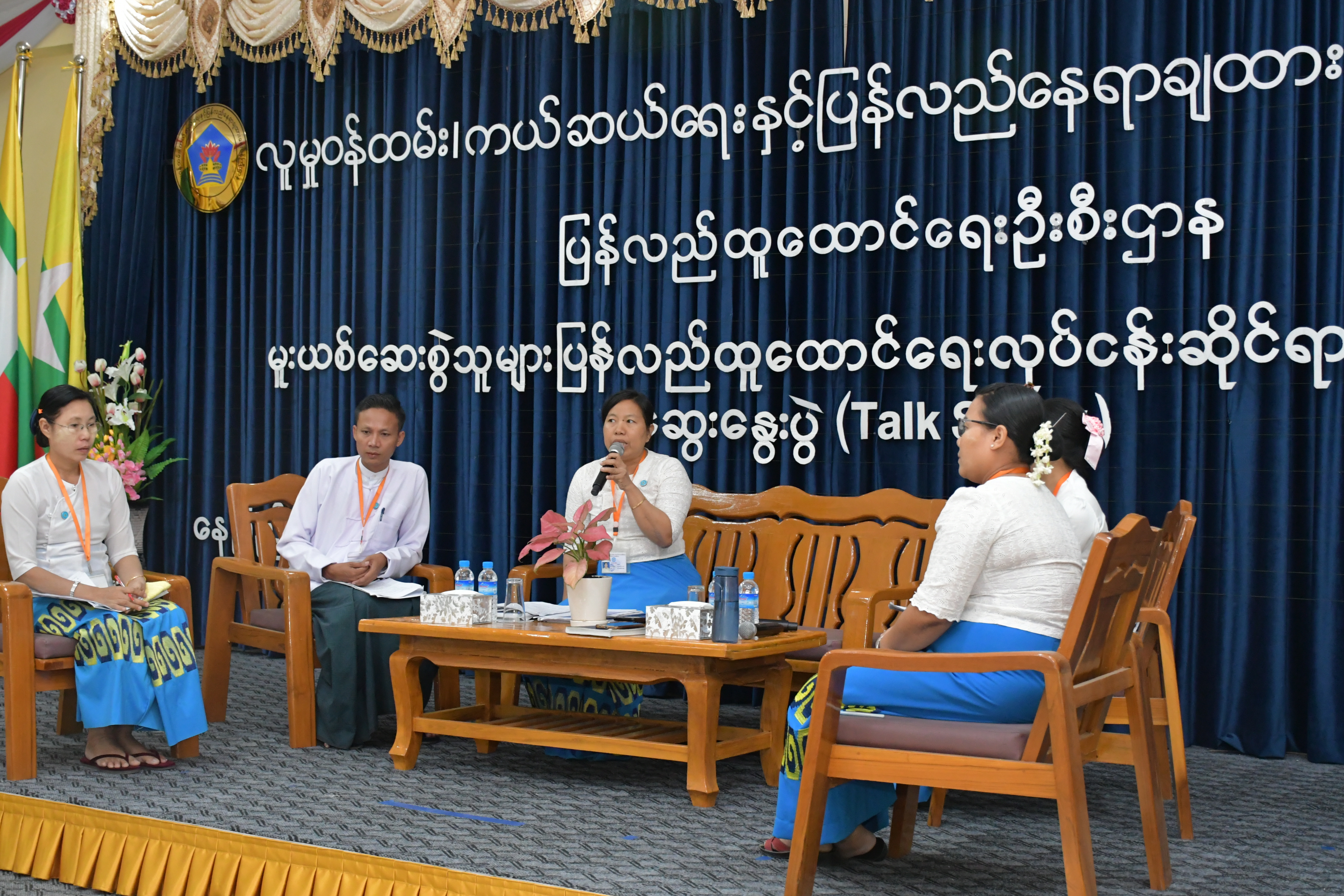 အဆိုပါ စကားဝိုင်းဆွေးနွေးပွဲ(Talk Show) အစီအစဉ်တွင် ပြန်လည်ထူထောင်ရေး ဦးစီးဌာန၊ ညွှန်ကြားရေးမှူးချုပ်က ပြည်တောင်စုဝန်ကြီး၏ မူဝါဒလမ်းညွှန်ချက်များနှင့်အညီ ဦးစီးဌာနရှိ ဝန်ထမ်းများအနေဖြင့် Operational Excellent ဖြစ်စေရန် ရည်ရွယ်၍ ယခုလို စကားဝိုင်းဆွေးနွေးပွဲ အစီအစဉ်ကို ဒုတိယအကြိမ် ကျင်းပရခြင်း ဖြစ်ပါကြောင်း၊ ယခုအစီအစဉ်သို့ တက်ရောက်ကြသည့် ဝန်ထမ်းများအနေဖြင့် ဘာသာရပ်ဆိုင်ရာ အကြောင်းအရာတို့ကို သိရှိ နားလည်နိုင်ရေးအပြင် လုပ်ငန်းဆောင်ရွက်ခြင်းဆိုင်ရာ အတွေ့အကြုံတို့ကိုလည်း သိရှိနိုင်မည် ဖြစ်ကြောင်း၊ ပြည်တွင်း၌ဖြစ်စေ၊ ပြည်ပသို့သွားရောက်သည့်အခါဖြစ်စေ ဘာသာရပ်ဆိုင်ရာ လုပ်ငန်းအစီအစဉ်တို့ကို ဆွေးနွေးပြောကြားနိုင်သည့် စွမ်းဆောင်ရည်မြင့်တက်လာနိုင်မည်ဖြစ် ကြောင်း၊ ဘာသာရပ်ဆိုင်ရာ ကျွမ်းကျင်မှုအပြင် ပါဝင်ဆွေးနွေးခြင်းအားဖြင့် မိမိကိုယ်မိမိယုံကြည် မှုတို့ တိုးတက်လာနိုင်မည်ဖြစ်ကြောင်း၊ ၂၀၂၃ ခုနှစ်အတွင်း ဝန်ထမ်းများအတွက် စွမ်းဆောင်ရည် မြင့်မားရေးအစီအစဉ်တို့ကို ယခုလို Talk Show အစီအစဉ်အပြင် Workshop တို့ကိုပါ ပြုလုပ် သွားမည် ဖြစ်သောကြောင့် သေချာစွာလေ့လာလိုက်နာဆောင်ရွက်ကြရန် လိုအပ်ကြောင်းအဖွင့် အမှာစကား ပြောကြားခဲ့ပါသည်။