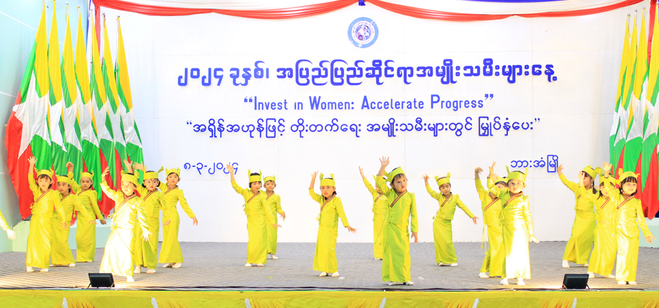 ဧရာဝတီတိုင်းဒေသကြီး လူမှုဝန်ထမ်းရုံးမှ အပြည်ပြည်ဆိုင်ရာ အမျိုးသမီးများနေ့ အခမ်းအနားကို ၂၀၂၄ခုနှစ်၊ မတ်လ(၈)ရက်၊ နံနက် (၀၉း၀၀)အချိန်တွင် ဧရာဝတီတိုင်းဒေသကြီး၊ ပုသိမ်မြို့၊ ဧရာရွှေဝါခန်းမ၌ ကျင်းပပြုလုပ်ခဲ့ပြီး အခမ်းအနားသို့ ဧရာဝတီတိုင်းဒေသကြီးအစိုးရအဖွဲ့ ဝန်ကြီးချုပ်နှင့်ဇနီး၊ တိုင်းဒေသကြီးအစိုးရအဖွဲ့ဝင် ဝန်ကြီးများနှင့်ဇနီးများ၊ တိုင်အဆင့်/ခရိုင်အဆင့် အမျိုးသမီးကော်မတီဝင်များ၊ တိုင်းအဆင့်ဌာနဆိုင်ရာများ၊ ကြက်ခြေနီတပ်ဖွဲ့ဝင်များ၊ အမျိုးသမီးရေးရာနှင့် မိခင်နှင့်ကလေးစောင့်ရှောက်ရေးအသင်းဝင်များ၊ မြန်မာနိုင်ငံ အမျိုးသမီးနှင့် ကလေးသူငယ်များ ဘဝမြှင့်တင်ရေးအသင်းဝင်များ၊ စုစုပေါင်း (၂၀၀)ခန့် တက်ရောက်ခဲ့ပါသည်။ အခမ်းအနားတွင် ဧရာဝတီတိုင်းဒေသကြီးအစိုးရအဖွဲ့၊ ဝန်ကြီးချုပ်မှ အဖွင့်အမှာစကားပြောကြားခြင်း၊ ကမ္ဘာ့ကုလသမဂ္ဂ၊ အထွေထွေအတွင်းရေးမှူးချုပ်ကပေးပို့သော သဝဏ်လွှာ Video Clip အား ပြသခြင်း၊ လူမှုဝန်ထမ်း၊ ကယ်ဆယ်ရေးနှင့် ပြန်လည်နေရာချထားရေးဝန်ကြီးဌာန ကပေးပို့သည့် ၂၀၂၄ ခုနှစ် အပြည်ပြည်ဆိုင်ရာ အမျိုးသမီးများနေ့ အထိမ်းအမှတ် အသိပညာပေး Video Clip အားပြသခဲ့ပြီး အစိုးရအဖွဲ့ဝန်ကြီးချုပ်နှင့်ဇနီး၊ အမျိုးသမီးကော်မတီဝင်များက ခင်းကျင်းပြသထားသည့် အမျိူးသမီးများ၏ လက်မှုထုတ်ကုန်များအား လှည့်လည်ကြည့်ရှုအားပေးပြီး (၀၉း၃၀)နာရီတွင် အခမ်းအနားကို ရုတ်သိမ်းခဲ့ပါသည်။