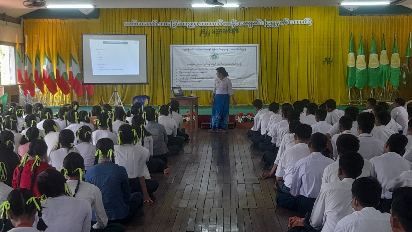 အဆိုပါ ဟောပြောပွဲတွင် မွန်ပြည်နယ်လူမှုဝန်ထမ်းရုံး၊ လက်ထောက်ညွှန်ကြားရေးမှူး ဒေါ်ဝင်းဝင်းမာက ကလေးသူငယ်အခွင့်အရေး ကိုယ်တိုင်သိရှိနားလည်ရေး၊ မိုင်းအန္တရာယ် အသိပညာပေးခြင်း၊ လူကုန်ကူးမှုကင်းဝေးဖို့ အားလုံးဝိုင်းဝန်းပူးပေါင်းစို့၊ မူးယစ်အန္တရာယ်လူ့ရန်စွယ် အကြောင်းများကို ဟောပြောခဲ့ပြီး၊ ပြည်နယ်ဘေးအန္တရာယ်ဆိုင်ရာ စီမံခန့်ခွဲမှုဦးစီးမှူးရုံး၊ လက်ထောက်ညွှန်ကြားရေးမှူးက ကြိုတင်ကာကွယ် သဘာဝဘေးအန္တရာယ်များ အကြောင်းကို အသိပညာပေး ဟောပြောခဲ့ကြပါသည်။ အခမ်းအနားသို့ ကျောင်းအုပ်ဆရာကြီးနှင့် ဆရာမများ၊ ကျောင်းသား/သူများ စုစုပေါင်းအင်အား (၁၆၂) ဦး တက်ရောက်ခဲ့ကြပြီး အဆိုပါ အကြောင်းအရာများနှင့်ပတ်သက်၍ မေးခွန်းအမေးအဖြေများကို ကျောင်းသား/သူများအား မေးမြန်းကာ လက်ဆောင်ပစ္စည်းများ၊ အာဟာရမုန့်များပေးအပ်ခဲ့ပြီး အခမ်းအနားကို မွန်းတည့် (၁၂:၀၀)နာရီတွင် ရုပ်သိမ်းလိုက်ပါသည်။