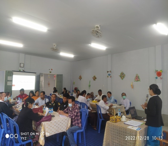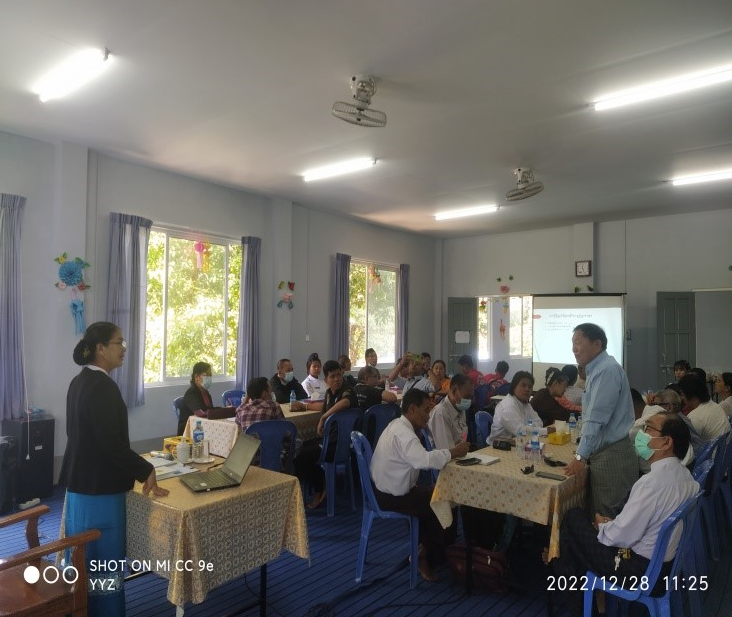 မွန်ပြည်နယ်လူမှုဝန်ထမ်းရုံးမှကြီးမှူး၍ (၂၈.၁၂.၂၀၂၂) ရက်နေ့၊ နံနက် (၁၀:၀၀) နာရီအချိန်တွင် မော်လမြိုင်မြို့၊ ပြည်နယ်လူမှုဝန်ထမ်းရုံး အစည်းအ‌ဝေးခန်းမ၌ သက်ကြီးရွယ်အိုများဆိုင်ရာ ဥပဒေနှင့်နည်းဥပဒေ အသိပညာပေးဆွေးနွေးပွဲကို ကျင်းပပြုလုပ်ခဲ့ပါသည်။ အဆိုပါ ဆွေးနွေးပွဲတွင် မွန်ပြည်နယ်လူမှုဝန်ထမ်းရုံး၊ ညွှန်ကြားရေးမှူး ဒေါ်လဲ့ယဉ်ဝင်းမှ သက်ကြီးရွယ်အိုများဆိုင်ရာ ဥပဒေနှင့်နည်းဥပဒေပါ အခန်းများ၊ ဘိုးဘွားရိပ်သာများမှ ဆောင်ရွက်ရမည့်တာဝန်များကို Power Point ဖြင့် အသေးစိတ်ရှင်းလင်းပြောကြားပြီး တက်ရောက်လာသူများမှ သိရှိလိုသည်များကို မေးမြန်းရာ ပြည်နယ်လူမှုဝန်ထမ်းရုံး ညွှန်ကြားရေးမှူးမှ ပြန်လည်ဖြေကြားပြီး နိဂုံးချုပ်စကားပြောကြားကာ ဆွေးနွေးပွဲကို မွန်းတည့် (၁၂:၀၀) နာရီအချိန်တွင် ရုပ်သိမ်းခဲ့ပါသည်။ အဆိုပါ ဆွေးနွေးပွဲသို့ ဘိုးဘွားရိပ်သာများမှ ကြီးကြပ်မှုကော်မတီဝင်များ၊ လူမှုကယ်ဆယ်ရေးအသင်းအဖွဲ့များမှကိုယ်စားလှယ်များ၊ INGOs, NGO အဖွဲ့အစည်းတို့မှတာဝန်ရှိသူများ စုစုပေါင်းအင်အား (၃၅)ဦး တက်ရောက်ခဲ့ကြပါသည်။