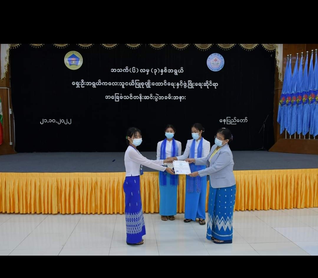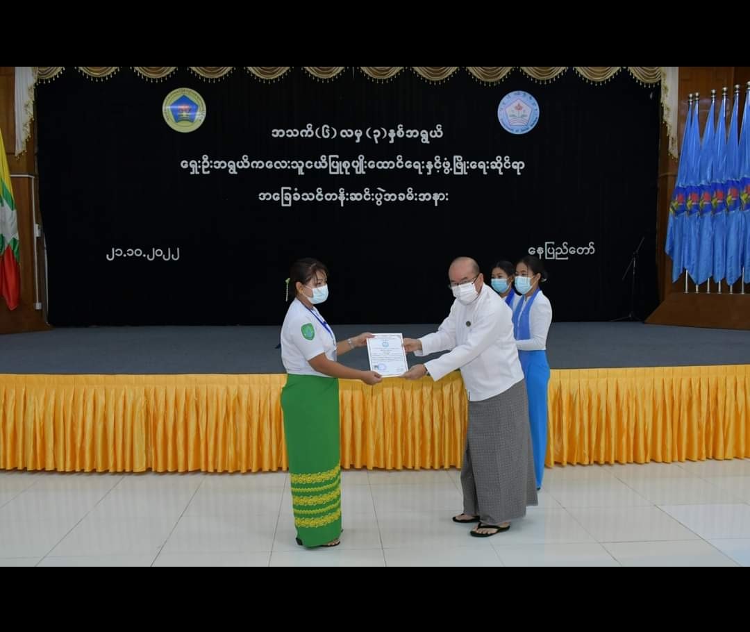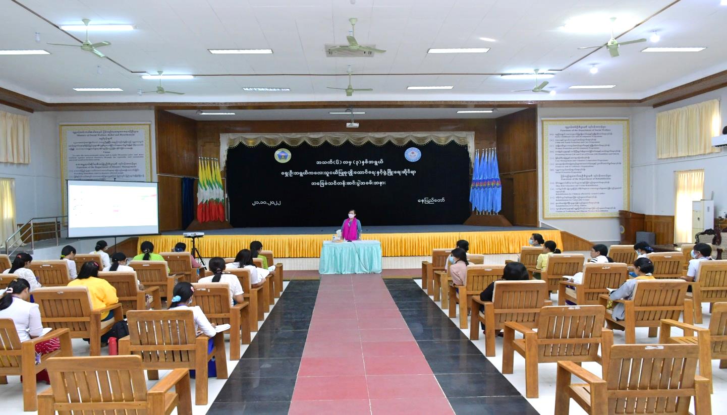ပြည်ထောင်စုနယ်မြေ၊ နေပြည်တော်အတွင်းရှိ ဝန်ကြီးဌာနများတွင် နေ့ကလေးထိန်းဌာနများဖွင့်လှစ်နိုင်ရန် ရည်ရွယ်ဖွင့်လှစ်ခဲ့သည့် အသက် (၆) လမှ (၃)နှစ်အရွယ် ကလေးသူငယ်ပြုစုစောင့်ရှောက်သူများအတွက် ရှေးဦးအရွယ်ကလေးသူငယ်ပြုစုပျိုးထောင်ရေးနှင့်ဖွံ့ဖြိုးရေးဆိုင်ရာအခြေခံသင်တန်း သင်တန်းဆင်းပွဲအခမ်းအနားကို (၂၁.၁၀.၂၀၂၂) ရက်နေ့၊ နံနက် (၁၀:၀၀)နာရီတွင် လူမှုဝန်ထမ်း၊ ကယ်ဆယ်ရေးနှင့် ပြန်လည်နေရာချထားရေးဝန်ကြီးဌာန၊ ဝန်ကြီးရုံးစုပေါင်းခန်းမ၌ ကျင်းပခဲ့ရာ လူမှုဝန်ထမ်း၊ ကယ်ဆယ်ရေးနှင့်ပြန်လည်နေရာချထားရေးဝန်ကြီးဌာန၊ ဒုတိယဝန်ကြီး၊ ညွှန်ကြားရေးမှူးချုပ်များနှင့် တာဝန်ရှိသူများ၊ သက်ဆိုင်ရာဝန်ကြီးဌာနများမှ တာဝန်ရှိသူများ၊ သင်တန်းသူ၊ သင်တန်းသားများတက်ရောက်ခဲ့ပါသည်။