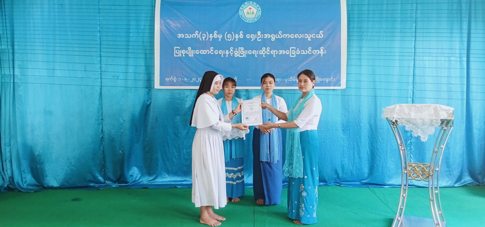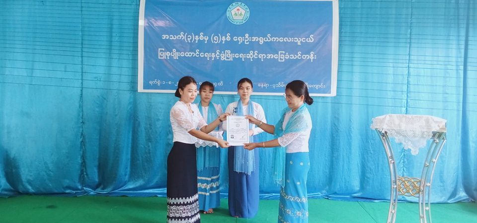 ဧရာဝတီတိုင်းဒေသကြီး၊ လူမှုဝန်ထမ်းရုံးမှ အသက် (၃) နှစ်မှ (၅) နှစ် ရှေးဦးအရွယ် ကလေးသူငယ်ပြုစုပျိုးထောင်ရေးနှင့် ဖွံ့ဖြိုးရေးဆိုင်ရာအခြေခံသင်တန်းကိုသင်တန်းသူ (၃၀) ဦးဖြင့် (၁.၈.၂၀၂၄) ရက်မှ (၂၁.၈.၂၀၂၄) ရက်ထိ ဖွင့်လှစ်ခဲ့ပြီး သင်တန်းဆင်းပွဲ အခမ်းအနားကို (၂၁.၈.၂၀၂၄) ရက်တွင် ပုသိမ်မူလတန်းကြိုကျောင်း၌ ကျင်းပပြုလုပ်ရာ ဧရာဝတီတိုင်းဒေသကြီး လူမှုဝန်ထမ်းရုံးမှ ညွှန်ကြားရေးမှူးနှင့် တာဝန်ရှိသူများမှ သင်တန်းသား/သူများအား သင်တန်းဆင်းလက်မှတ်များပေးအပ်ခဲ့ပါသည်။