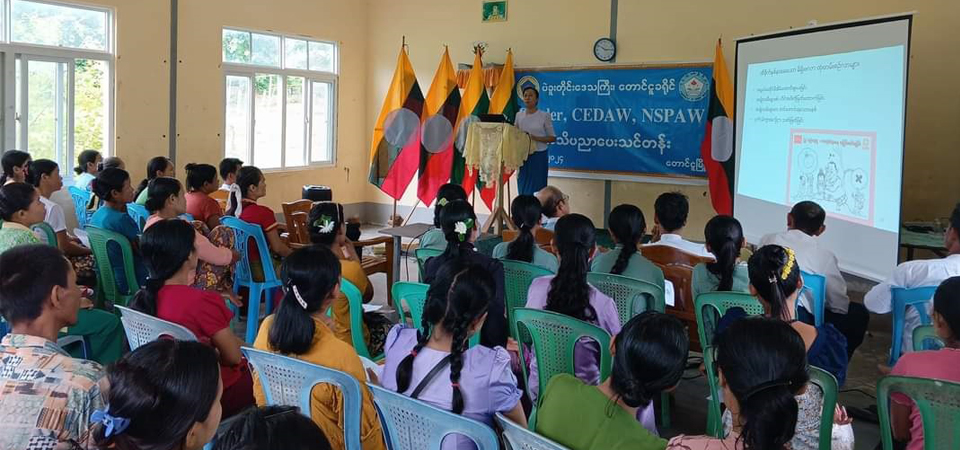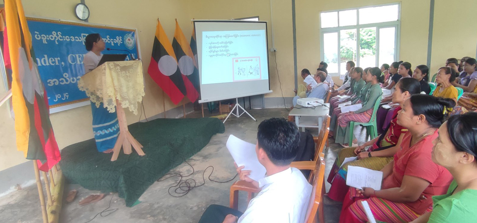 လူမှုဝန်ထမ်းဦးစီးဌာန၊ ပဲခူးတိုင်းဒေသကြီး၊ တောင်ငူခရိုင်လူမှုဝန်ထမ်းရုံးမှ တာဝန်ရှိ သူများက ဦးဆောင်၍ Gender, CEDAW, NSPAW အသိပညာပေးသင်တန်း ကို ၁၁-၆-၂၀၂၄ ရက်တွင် တောင်ငူခရိုင်၊ ကျောက်တိုင်ကျေးရွာ အုပ်စု၊ (၇) မိုင်ရွာတန်းရှည် ကျေးရွာတွင် ကျင်းပပြုလုပ်ခဲ့ရာ အဆိုပါ အခမ်းအနားသို့ တောင်ငူခရိုင် ရှမ်းလူငယ်စာပေနှင့် ယဥ်ကျေးမှု အသင်းဥက္ကဌနှင့်အဖွဲ့ဝင်များ၊ ရှမ်းတိုင်းရင်းသားတိုင်းရင်းသူများစုစုပေါင်း (၈၅) ဦး တက်ရောက်ခဲ့ပါသည်။