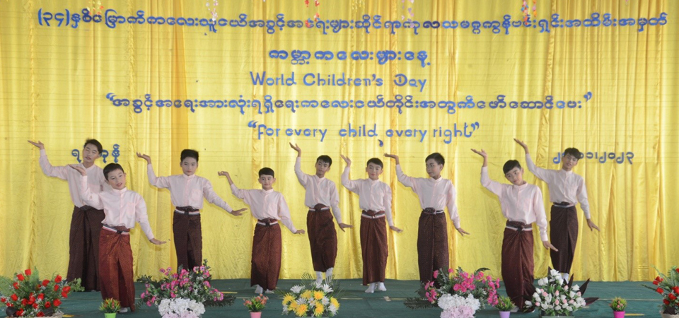 ၂၀၂၃ ခုနှစ်၊ နိုဝင်ဘာလ (၂၀) ရက်နေ့တွင် ကျရောက်သည့် (၃၄) နှစ်မြောက် ကလေးသူငယ်အခွင့်အရေးများဆိုင်ရာ ကုလသမဂ္ဂကွန်ဗင်းရှင်း နှစ်ပတ်လည်နေ့အထိမ်းအမှတ် (ကမ္ဘာ့ကလေးများနေ့) အခမ်းအနားကို (၂၀.၁၁.၂၀၂၃) ရက်နေ့ နံနက် (၀၉:၀၀) နာရီတွင် အမျိုးသမီးကလေးများသင်တန်းကျောင်း (ရန်ကုန်) တွင် ကျင်းပပြုလုပ်ခဲ့ရာ အဆိုပါအခမ်းအနားသို့ ကလေးသူငယ်အခွင့်အရေးများဆိုင်ရာ ကော်မတီဝင်များ၊ တိုင်းဒေသကြီးအမျိုးသမီးရေးရာ ဥက္ကဌနှင့်အဖွဲ့ဝင်များ၊ မိခင်နှင့်ကလေးစောင့်ရှောက်ရေး ကြီးကြပ်မှုအဖွဲ့ဝင်များ၊ ခရိုင်ဦးစီးမှူးများ၊ ဌာနငယ်/ သင်တန်းကျောင်းများမှ ကျောင်းအုပ်များ၊ မူလတန်းကြိုကျောင်းမှ ရင်သွေးငယ်လေးများ၊ မသန်စွမ်းကျောင်းများမှ ကျောင်းသား/ကျောင်းသူများ၊ နန်းဦးဖွံ့ဖြိုးရေးပရဟိတဂေဟာမှ ကလေးများ စုစုပေါင်း (၂၄၀) ဦး တက်ရောက်ခဲ့ကြပါသည်။
