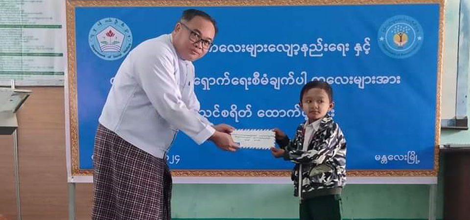 မန္တလေးတိုင်းဒေသကြီးလူမှုဝန်ထမ်းဦးစီးမှူးရုံး၊ တိုင်းဒေသကြီးဦးစီးမှူးသည် မန္တလေးတိုင်းဒေသကြီးအတွင်း လမ်းပေါ်နေကလေးများလျော့နည်းရေးနှင့်ပပျောက်ရေးစီမံချက်ပါ ကလေးများအား ပြန်လည်ထူထောင်ရေးဦးစီးဌာနရန်ပုံငွေဖြင့် ပညာသင်စရိတ်ထောက်ပံ့ခြင်းကို(၂၅-၁-၂၀၂၄)ရက်နေ့ မနက်(၁၀:၀၀)နာရီတွင် အောင်မြေသာစံမြို့နယ်(အထက-၃၈)ညောင်ကွဲ၌ ကျင်းပခဲ့ပြီး ကလေးတစ်ဦးလျှင်(၅၀၀၀၀)နှုန်းဖြင့်ကလေး(၄၅)ဦးအားထောက်ပံ့ပေးနိုင်ခဲ့ပါသည်။