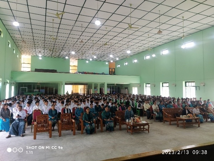 မွန်ပြည်နယ်လူမှုဝန်ထမ်းရုံးမှကြီးမှူးပြီး ပြည်နယ်အဆင့် ကလေးသူငယ်အခွင့်အရေးများဆိုင်ရာ ဥပဒေအသိပညာပေးဟောပြောပွဲကို (၁၃.၂.၂၀၂၃) ရက်နေ့၊ နံနက်(၀၉:၃၀)နာရီအချိန် မော်လမြိုင်မြို့၊ ပညာရေးဒီရီကောလိပ်၊ ပညာညီလာခန်းမ၌ ပါမောက္ခဆရာ၊ ဆရာမကြီးများ၊ ကျောင်းသား/သူ များအား အသိပညာပေးဟောပြောပွဲ ကျင်းပပြုလုပ်ခဲ့ပါသည်။ အဆိုပါ ဟောပြောပွဲတွင် မော်လမြိုင်ပညာရေးဒီဂရီကောလိပ်မှ ကျောင်းအုပ်ဆရာမကြီးမှအဖွင့်အမှာစကားပြောကြားပြီး၊ မွန်ပြည်နယ်လူမှုဝန်ထမ်းရုံး လက်ထောက်ညွှန်ကြားရေးမှူး ဒေါ်ဝင်းဝင်းမာက ကလေးသူငယ်အခွင့်အရေးများဆိုင်ရာဥပဒေ နောက်ခံသမိုင်းကြောင်း၊ ကလေးသူငယ်အခွင့်အရေးပါ အခန်းကဏ္ဍများ၊ ကလေးသူငယ်များလိုက်နာရမည့်စည်းကမ်းများ၊ ပြစ်မှုပြစ်ဒဏ်များ၊ ကလေးမွေးစားခြင်းလုပ်ထုံးလုပ်နည်းများ၊ ကလေးသူငယ်ကြီးကြပ်သူ၏တာဝန်ဝတ္တရားများ၊ အခြားနည်းလမ်းဖြင့်လွှဲပြောင်းဆောင်ရွက်ခြင်း၊ အခြားနည်းလမ်းဖြင့်ပြုစုစောင့်ရှောက်ခြင်း၊ ကလေးအလုပ်သမားနှင့်အဆိုးရွားဆုံးပုံစံဖြင့် အလုပ်ခိုင်းစေခြင်းခံရသော ကလေးသူငယ်ကိစ္စရပ်များ၊ ဥပဒေပါအခန်းကဏ္ဍများကို Power Point ဖြင့် အကျယ်တဝင့် ရှင်းလင်းပြောကြားပြီး ဟောပြောပွဲ အခမ်းအနားကို နံနက်(၁၁:၀၀) နာရီတွင် ရုပ်သိမ်းလိုက်ပါကြောင်းနှင့် အခမ်းအနားသို့ မော်လမြိုင်မြို့၊ ပညာရေးဒီရီကောလိပ်မှ ပါမောက္ခဆရာ၊ ဆရာမကြီးများ၊ ကျောင်းသား(၁၅၇)ဦး၊ ကျောင်းသူ(၃၇၈) ဦး၊ စုစုပေါင်း(၅၃၅) ဦးအား ဟောပြောခဲ့ပါသည်။