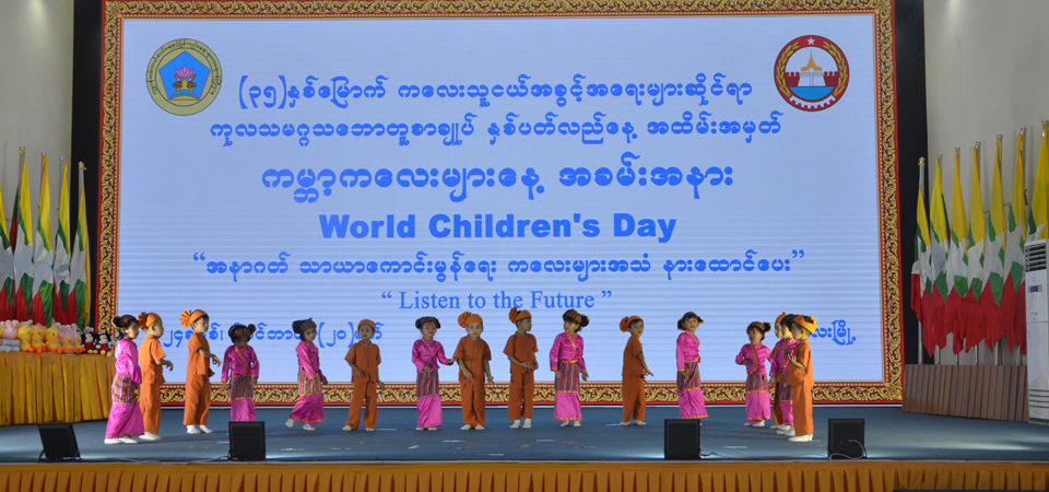 ၂၀၂၄ခုနှစ်၊ နိုဝင်ဘာလ ၂၀ရက်နေ့တွင် ကျရောက်သော ကမ္ဘာ့ကလေးများနေ့ အထိမ်းအမှတ် အခမ်းအနားအား မန္တလေးတိုင်းဒေသကြီးအစိုးရအဖွဲ့ ဦးဆောင်မှုဖြင့် မြို့တော်ခန်းမ၌ ၂၀. ၁၁. ၂၀၂၄ရက်၊ နံနက် ၉း၀၀ တွင် ကမ္ဘာ့ကလေးများနေ့ အထိမ်းအမှတ် အခမ်းအနားအား စည်ကားသိုက်မြိုက်စွာ ကျင်းပပြုလုပ်ခဲ့ပါသည်။