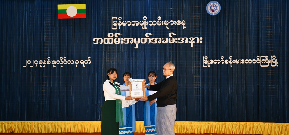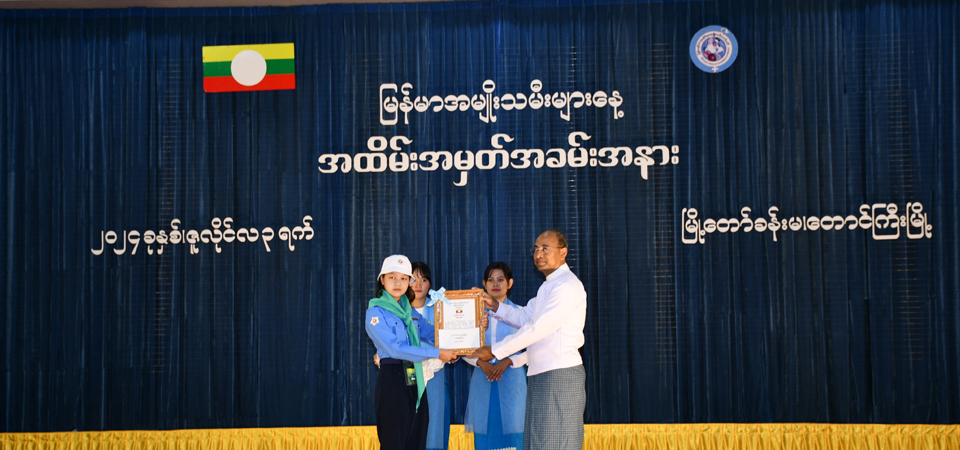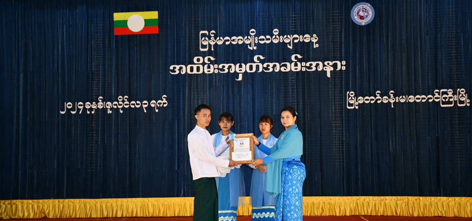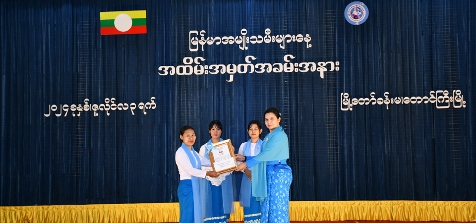 ထို့နောက် မြန်မာအမျိုးသမီးများနေ့ အထိမ်းအမှတ်အား ကြိုဆိုဂုဏ်ပြုသောအားဖြင့် စာစီစာကုံးပြိုင်ပွဲ၊ ဆောင်ပါးပြိုင်ပွဲ၊ အမျိုးသမီးဘော်လီဘောပြိုင်ပွဲ၊ ထုပ်စီးတိုးပြိုင်ပွဲတို့တွင် ဆုရရှိသူများနှင့် ထူးချွန်အမျိုးသမီးတို့အား ဂုဏ်ပြုဆုချီးမြှင့်ခဲ့ပါသည်။