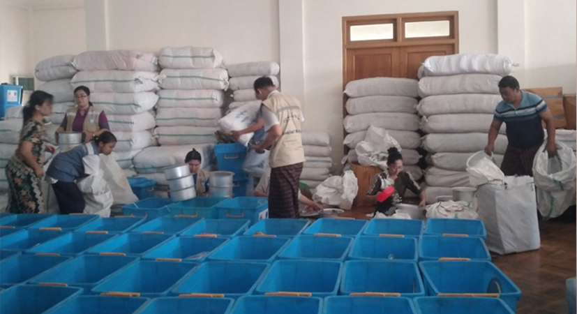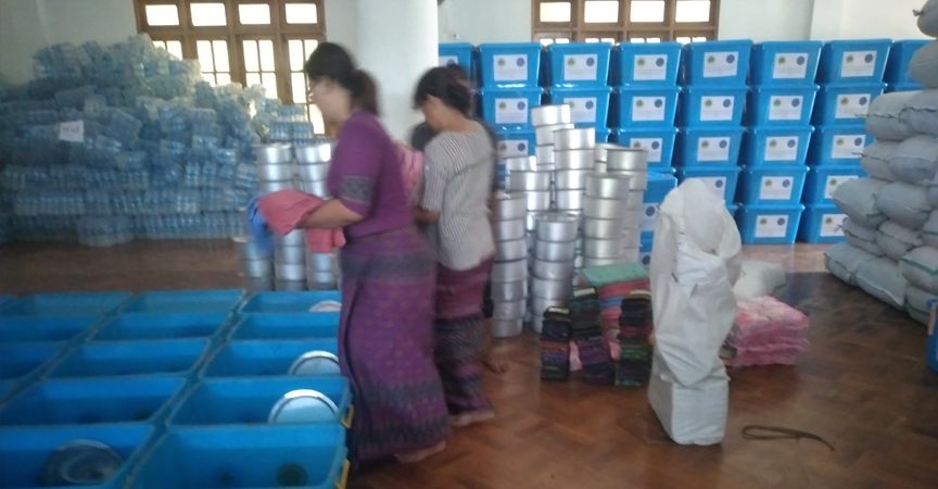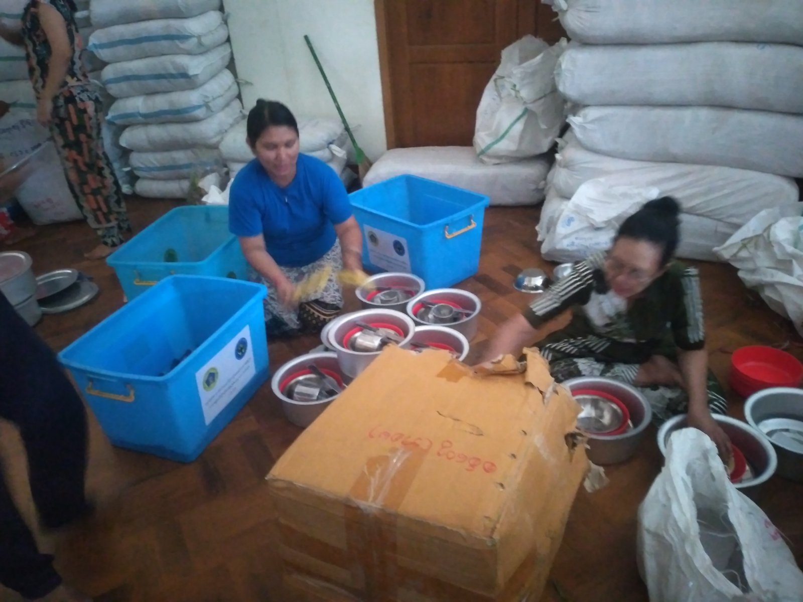 လူမှုဝန်ထမ်းဦးစီးဌာနမှ တာဝန်ရှိသူများသည် စစ်တွေမြို့သာသနာ့ ဗိမ္ဗာန်ရှိ မုန်တိုင်းသင့်ပြည်သူများအတွက် ယာယီဖွင့်လှစ်ထားသည့် ကယ်ဆယ်ရေးသိုလှောင်ရုံ၌ ဘေးအန္တရာယ်ဆိုင်ရာစီမံခန့်ခွဲမှုဦးစီးဌာနမှ ထောက်ပံ့မည့်ကယ်ဆယ်ရေး ပစ္စည်း (၁၅) မျိုးအား ပြည်သူများထံ ထောက်ပံ့ရေး ထုတ်ပိုးပြင်ဆင်ခြင်းများ ပူးပေါင်းဆောင်ရွက်ခဲ့ပါသည်။