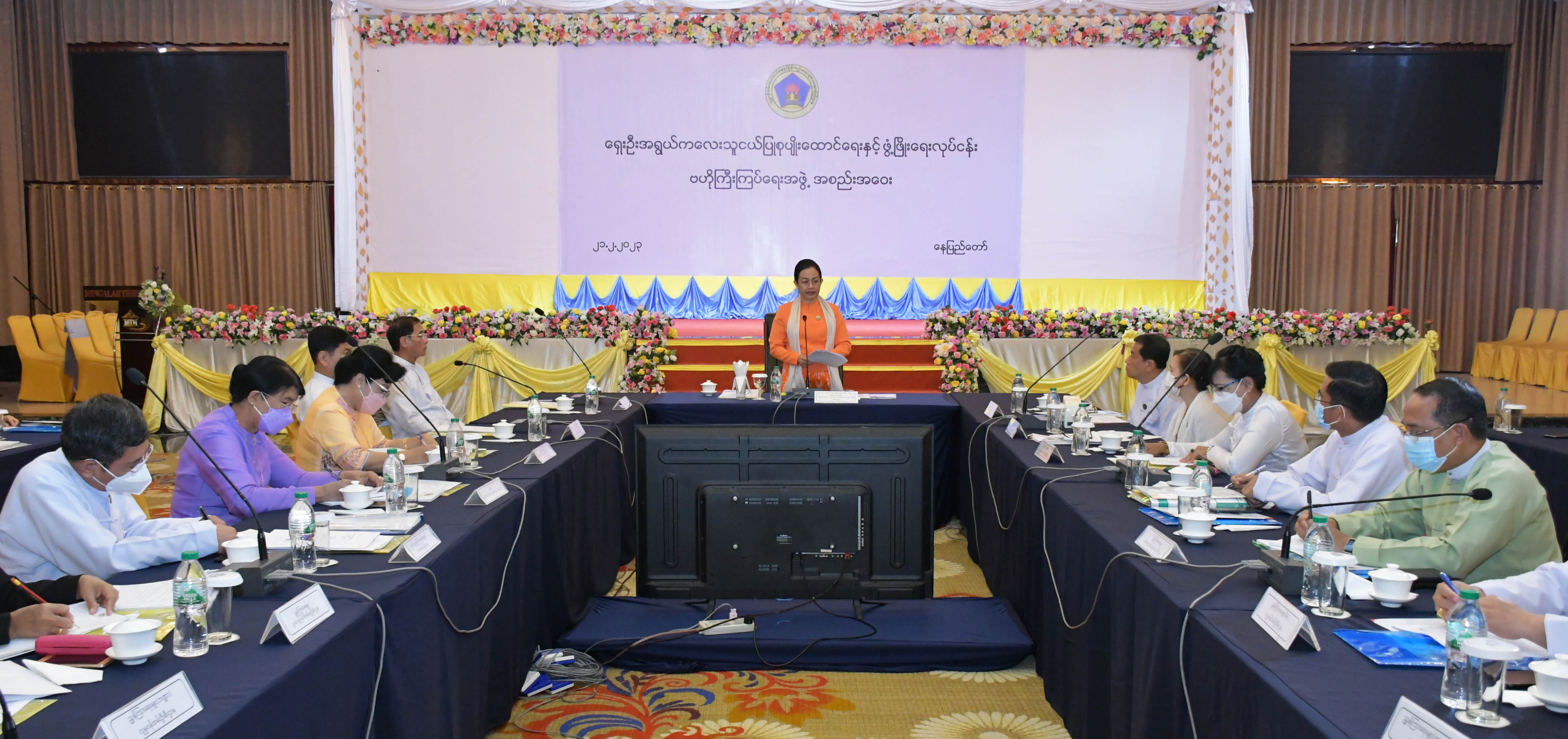 ထို့နောက် လူမှုဝန်ထမ်းဦးစီးဌာန၊ ညွှန်ကြားရေးမှူးချုပ်က ရှေးဦးအရွယ်ကလေးသူငယ် ပြုစုပျိုးထောင်ရေးနှင့် ဖွံ့ဖြိုးရေးလုပ်ငန်းစဉ်များနှင့်စပ်လျဉ်း၍ ဆောင်ရွက်ထားရှိမှုအခြေအနေ များ၊ ထောက်ပံ့ရေးလုပ်ငန်းစဉ်များ၊ ECCD ဆိုင်ရာ ဗဟိုကြီးကြပ်ရေးအဖွဲ့ ဘဏ္ဍာရေးလုပ်ထုံး လုပ်နည်းရေးဆွဲထားရှိမှုနှင့် မူကြိုဆရာမ၊ နေ့ကလေးထိန်းဆရာမ အလုပ်အကိုင်များအတွက် မြန်မာနိုင်ငံလုပ်သားများ ကျွမ်းကျင်မှု “စံ” သတ်မှတ်ပြဋ္ဌာန်းရေးအဖွဲ့ (NSSA) အသိအမှတ်ပြု လက်မှတ်ရရှိရေးအတွက် ဆောင်ရွက်လျက်ရှိသောလုပ်ငန်းစဉ်များအား ရှင်းလင်းဆွေးနွေးခဲ့ပါသည်။