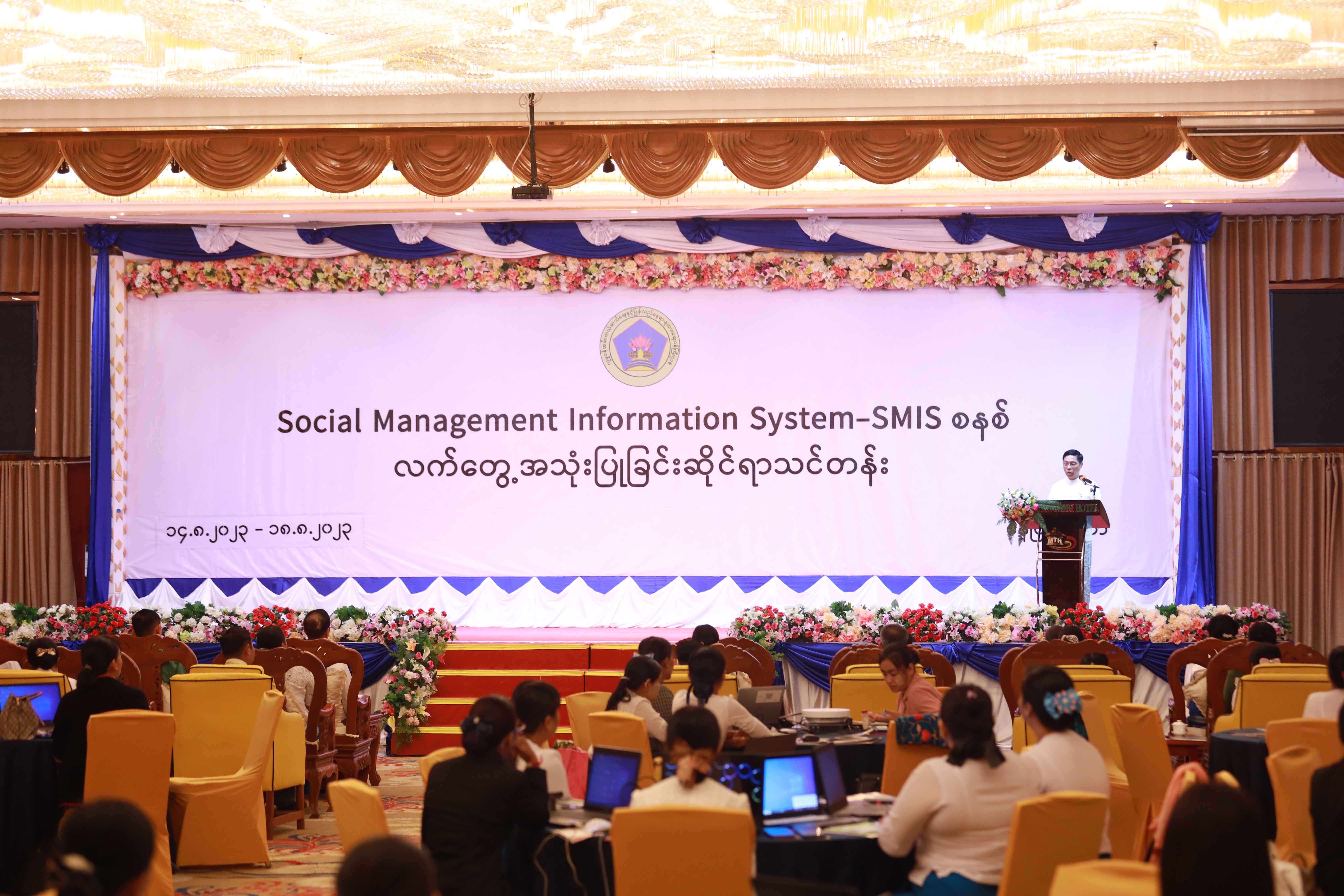 လူမှုရေးဆိုင်ရာစီမံခန့်ခွဲမှုဆိုင်ရာသတင်းအချက်အလက်စနစ်(Social Management Information System-SMIS) ၏အစိတ်အပိုင်းတစ်ခုဖြစ်သော ဖြစ်ရပ်စီမံခန့်ခွဲမှု သတင်းအချက်အလက်စနစ် (Case Management Information System-CMIS) Software Digital Platform ကိုအသုံးပြု၍ “CMIS Database Trainingလက်တွေ့အသုံးပြုခြင်းသင်တန်း”သင်တန်းဖွင့်ပွဲအခမ်းအနားကို ယနေ့နံနက်ပိုင်းကနေပြည်တော်ရှိမင်္ဂလာသီရိဟိုတယ်၌ ကျင်းပပြုလုပ်ခဲ့ပါသည်။