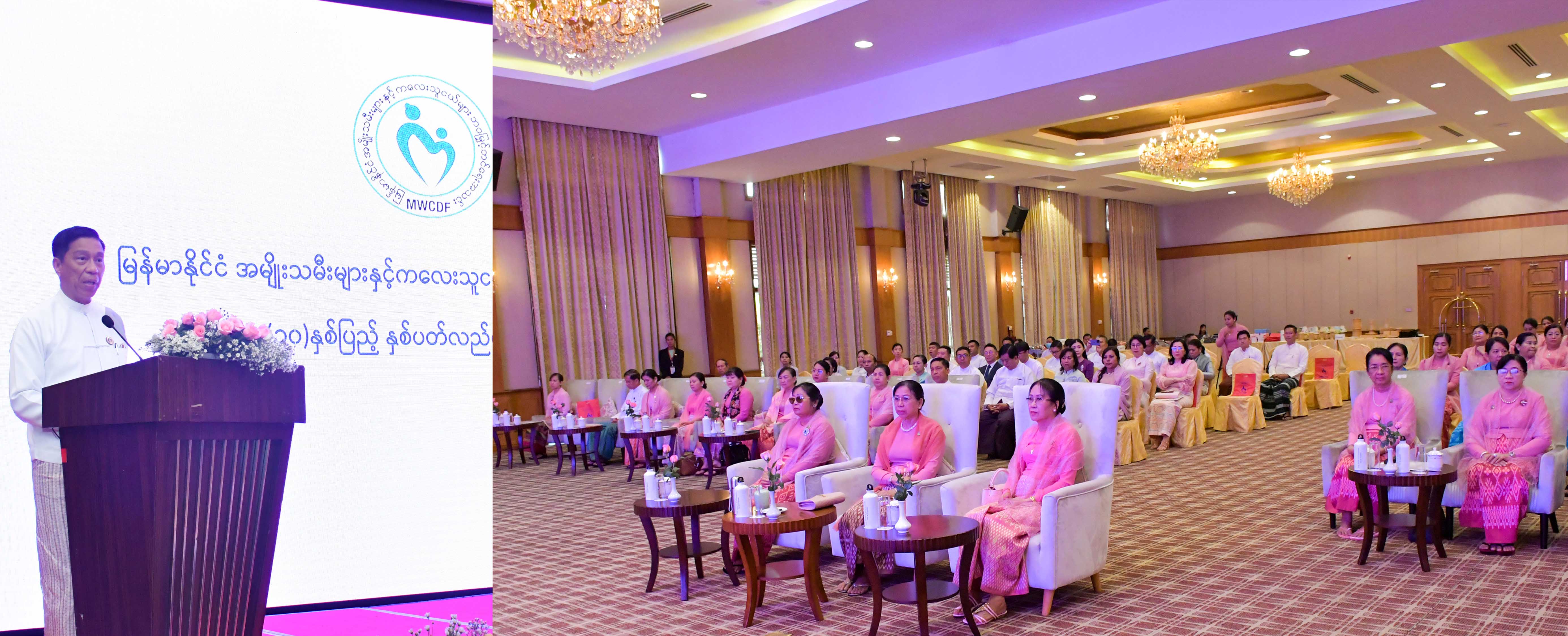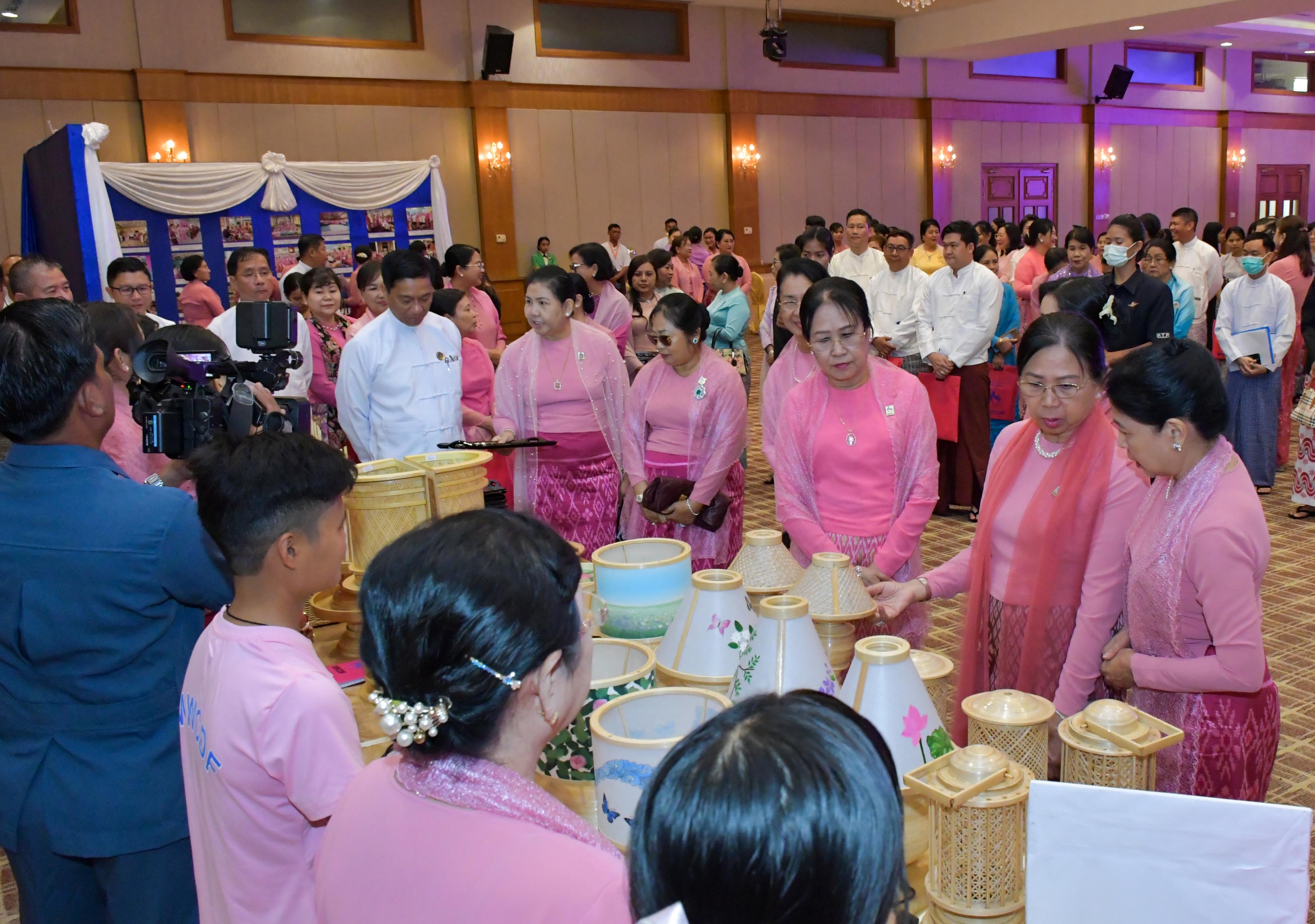 အခမ်းအနားတွင်လူမှုဝန်ထမ်း၊ကယ်ဆယ်ရေးနှင့် ပြန်လည်နေရာချထားရေးဝန်ကြီးဌာန၊ ပြည်ထောင်စုဝန်ကြီး၊ မြန်မာနိုင်ငံလုံးဆိုင်ရာအမျိုးသမီးကော်မတီ ဥက္ကဋ္ဌ ဒေါက်တာစိုးဝင်းက ဂုဏ်ပြုအမှာစကားပြောကြားရာတွင် ၁၉၉၅ ခုနှစ် ဘေဂျင်းကြေညာစာတမ်းအရ အမျိုးသမီးများအား ကဏ္ဍစုံလုပ်ငန်းနယ်ပယ်အသီးသီးတွင်ပါဝင်ခွင့်ရရှိစေရန် မြန်မာနိုင်ငံလုံးဆိုင်ရာ အမျိုးသမီးကော်မတီကို ၁၉၉၆ခုနှစ်၊ဇူလိုင်လ(၃)ရက်နေ့တွင်ဖွဲ့စည်းခဲ့ပါကြောင်း၊ မြန်မာနိုင်ငံအမျိုးသမီးများနှင့်ကလေးသူငယ်များဘဝမြှင့်တင်ရေးအသင်းအနေနဲ့မြန်မာနိုင်ငံလုံးဆိုင်ရာအမျိုးသမီးကော်မတီမှာအဖွဲ့ဝင်အဖြစ်တက်ကြွစွာဆောင်ရွက်ပေးနေသလိုပြည်ထောင်စုအဆင့်မှာသာမကလက်ရှိဖွဲ့စည်းထားပြီးဖြစ်တဲ့တိုင်းဒေသကြီး၊ပြည်နယ်နှင့်ခရိုင်တို့မှာလည်းအမျိုးသမီးများနှင့်ကလေးသူငယ်များဘဝမြှင့်တင်ရေးအသင်းအဖွဲ့များဖွဲ့စည်းပြီးတက်ကြွစွာပါဝင်ဆောင်ရွက်နေကြပါကြောင်း၊လက်ရှိနိုင်ငံတော်ကအကောင်အထည်ဖော်ဆောင်ရွက်လျက်ရှိသည့်အမျိုးသမီးများဖွံ့ဖြိုးတိုးတက်ရေးလုပ်ငန်းစဉ်များတွင်လည်း အမျိုးသမီးများအား နည်းမျိုးစုံဖြင့်ခွဲခြားမှုပပျောက်ရေးဆိုင်ရာကုလသမဂ္ဂကွန်ဗင်းရှင်းနှင့် စဉ်ဆက်မပြတ် ဖွံ့ဖြိုးမှုပန်းတိုင်(၁၇)ခုအနက်မှ ပန်းတိုင်(၅)ဖြစ်သည့် “ကျား၊မ တန်းတူညီမျှမှုကို ရရှိရန်နှင့် အမျိုးသမီးများနှင့် မိန်းကလေးငယ်များအားလုံးကို စွမ်းဆောင်ရည် မြှင့်တင်ရန်” ဆိုသည့် ရည်မှန်းချက်နှင့်စပ်လျဉ်းသည့်လုပ်ငန်းစဉ်များ အကောင်အထည်ဖော် ဆောင်ရွက်လျက်ရှိပါကြောင်း၊အာဆီယံဒေသတွင်း ပူးပေါင်းဆောင်ရွက်မှုအနေဖြင့် အာဆီယံအသိုက်အဝန်းမဏ္ဍိုင်(၃)ခုအောက်ရှိကဏ္ဍပေါင်းစုံမှအဖွဲ့အစည်းများကအကောင်အထည်ဖော်ဆောင်ရွက်နေသည့် ASEAN Gender Mainstreaming Strategic Framework- AGMSF (2021-2025)ကိုအကောင်အထည်ဖော်ဆောင်ရွက်ရာမှာလည်း ဤအသင်းကပါဝင်လျက်ရှိပါကြောင်း၊ကိုဗစ်-၁၉ကာလအတွင်းကျေးလက်နေအမျိုးသမီးများအတွက်အသက်မွေးဝမ်းကျောင်းလုပ်ငန်းများပြန်လည်ထူထောင်ရေးဆိုင်ရာလုပ်ငန်းစီမံချက်ကိုဆောင်ရွက်ရာတွင်လည်းမြန်မာနိုင်ငံအမျိုးသမီးများနှင့်ကလေးသူငယ်များဘဝမြှင့်တင်ရေးအသင်းကအိမ်တွင်းလက်မှုထည်ပစ္စည်းများထုတ်လုပ်ခြင်း (ဝါးလက်မှု) သင်တန်းပေးခြင်းတွင်ပံ့ပိုးပါဝင်ဆောင်ရွက်ခဲ့သည့်အတွက်နေပြည်တော်လယ်ဝေးမြို့နယ်၊သာယာကုန်းကျေးရွာနှင့်တပ်ကုန်းမြို့နယ်၊သကြားဟင်းအိုးကျေးရွာတို့မှာရှိသည့်ဒေသခံအမျိုးသမီးဦးဆောင်သူ(၂၀)ဦးအတွက်အသက်မွေးဝမ်းကျောင်းလုပ်ငန်းနည်းပညာများရရှိပြီးဝင်ငွေရအလုပ်အကိုင်များဖန်တီးပေးနိုင်ခဲ့ကြောင်း၊၎င်းအပြင်အမျိုးသမီးများ အလုပ်အကိုင်ရရှိစေရန်ရည
