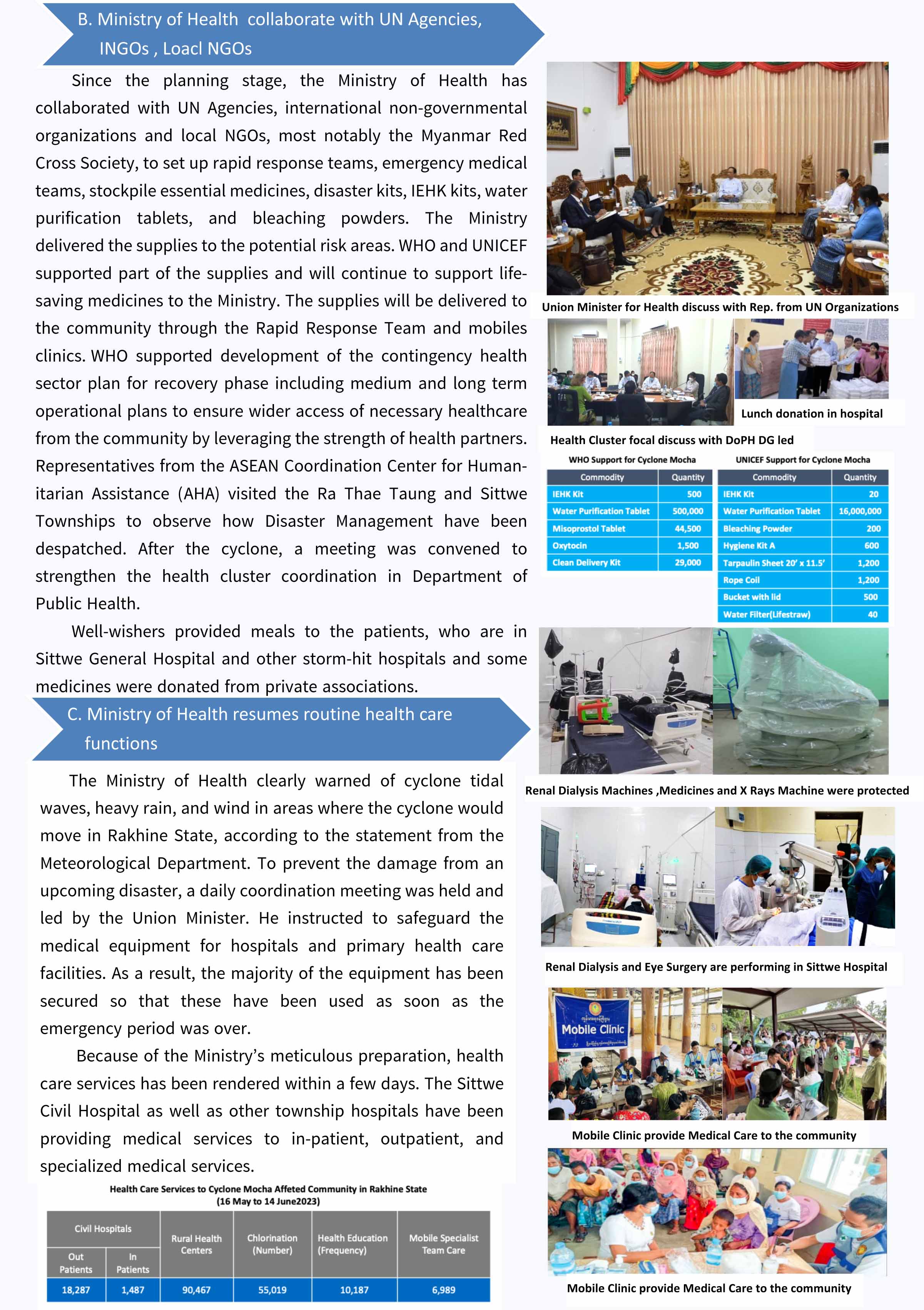 Ministry of Health’s (May 2023) Response to Cyclone Mocha in States and Regions Reporting Period: