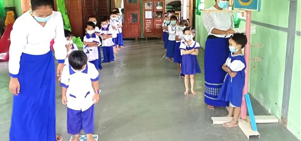 ကလေးများ အသက်အရွယ်အလိုက် ဖွံ့ဖြိုးမှု ကို မေးခွန်းလွှာများဖြင့် အိမ်တိုင်ရာရောက် တိုင်း တာစစ်ဆေးပြီး လိုအပ်ချက်များအလိုက် ဝန်ဆောင်မှုပေးခြင်း၊